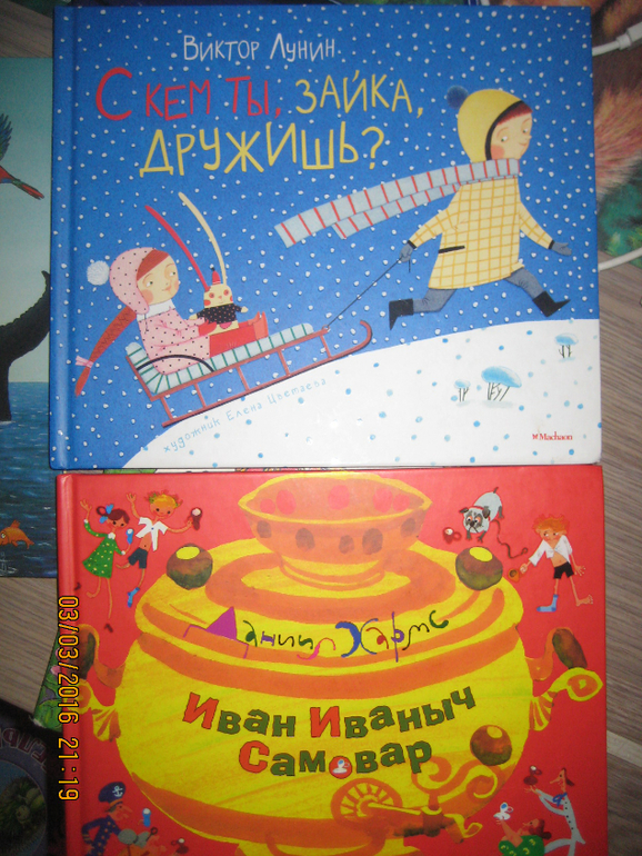 Лунина читаем, но без особого энтузиазма, иллюстрации в этой книге наши (раньше пробовали Лунина в сборнике Вежливыйт слон, но из-за иллюстраций пришлось передарить его, ни в какую Варя не хотела). Хармс давно любим, началась любовь с Веселого старичка в махаоновском сборничке, из этой книги читаем Миллион и Иван Иваныч Самовар, почти выучили уже))