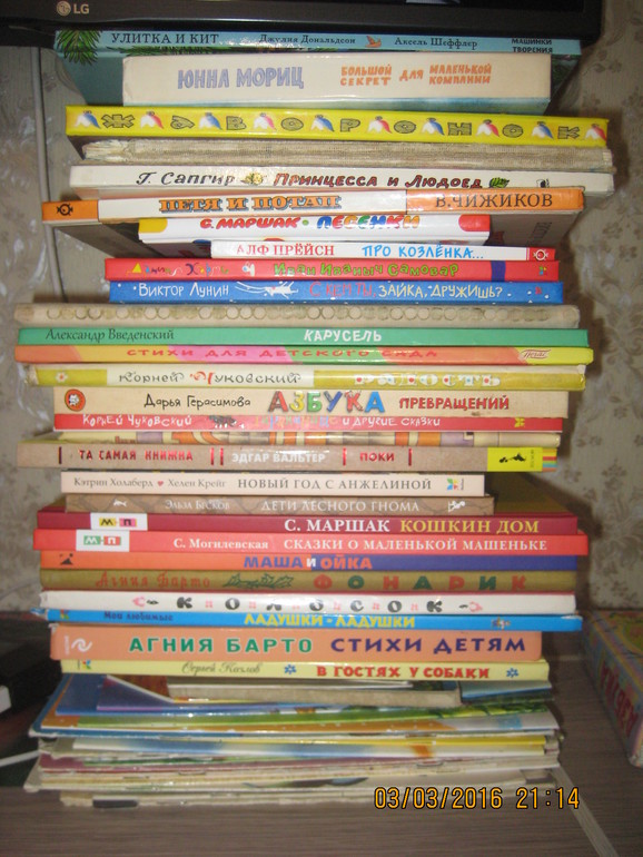 Это Варюшкина стопочка и она меня очень радует! :) С Олежкой мы до сих пор не можем наладить чтение, он так и хочет скушать все наши литературные сокровища, но парочка книг его заинтересовывает (хоть и всего на пару минут):