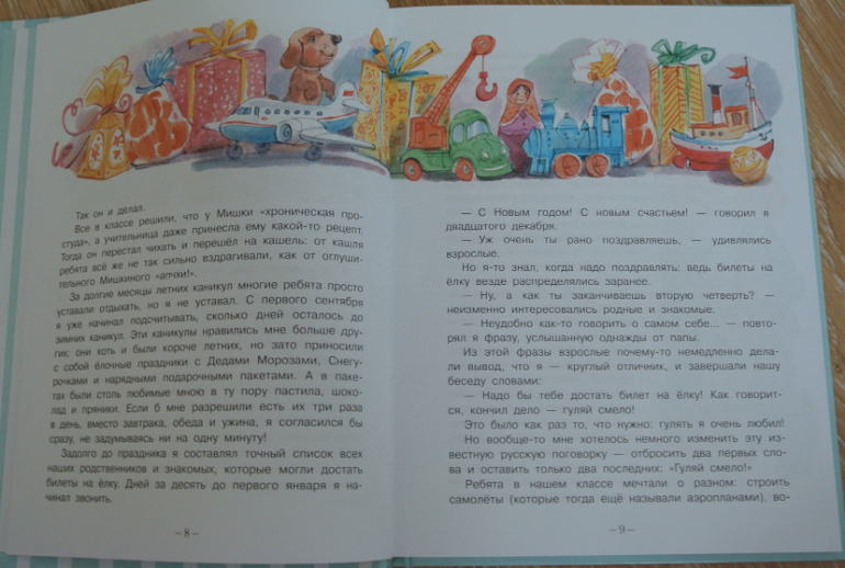 По началу изложения мальчишки много смеялись. Над поведением родителей мальчика, над соседкой с собакой, над происшествием в цирке, над массовиком-затейником, который каждый раз встречал мальчика на елке и разговаривал с ним стихами. А чем ближе мы подходили к финалу, тем тише слушали книгу. Им было стыдно. За то, что радовались такому празднику жизни и сами мечтали оказаться в подобной Стране. За то, что думали о друге автора также: "почему это он не гордится мной? почему он молчит только?"