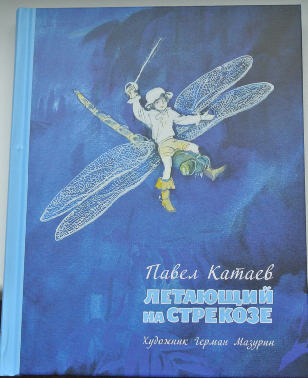П.Катаев. Летающий на стрекозе - в книге 2 произведения. "Пять робинзонов" и "Летающий на стрекозе".Сама книжка издана в лучших традициях издательства "Нигма". Приятный томик с тонированной (кремовой) плотной бумагой и чудесными иллюстрациями Мазурина. Обложка, которую хочется постоянно гладить. На глубоком синем фоне выпуклые кружевные крылья стрекозы. По названию книги приятно проводить пальцами...