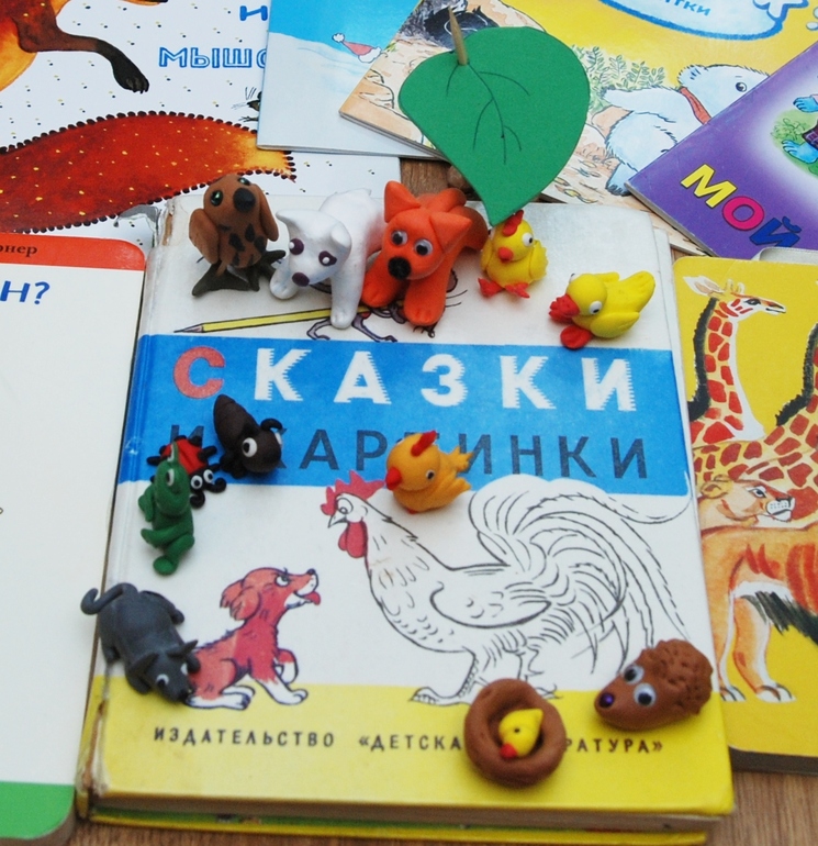 Из Сутеева очень много сказок обыграли, я налепила фигурок из застывающей массы и пластилина.