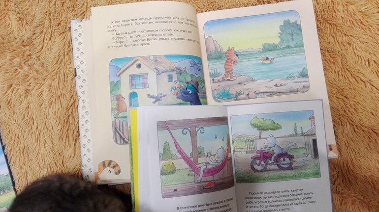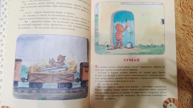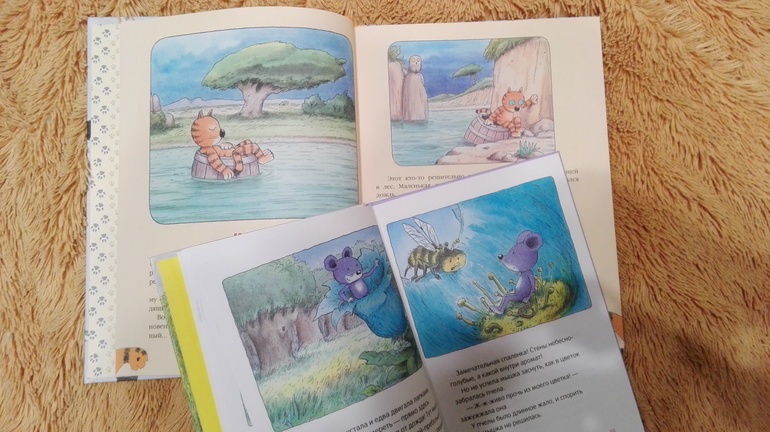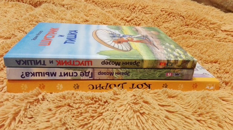 Сами истории очень интересные, текста больше, чем в предыдущих книгах. Я бы рекомендовала эту книгу лет с 3-4. В книге много юмора, дочка не во всех местах его поняла. В Шустрик и Тишка и Где спит мышка текста меньше и он проще, более понятен лет с 2.