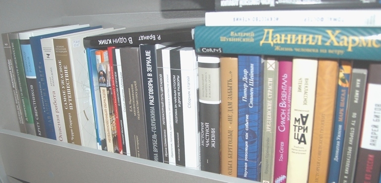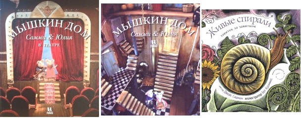 Самую нижнюю полочку неудобно было фотографировать, а на ней стояли две книги про Мышиный дом (дом и театр), «Живые спирали» и что-то еще из последних новинок Пешком в историю и Карьеры Пресс. Эта полочка стала для меня тоже приятным удивлением и неожиданностью.