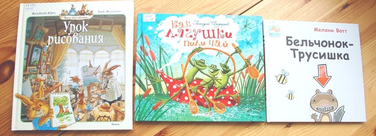 «Урок рисования» из той самой серии про кроликов Женевьева Юрье. Помню, что хотела её скупить всю, но воздержалась. И вот теперь, пожалуйста, можно читать в библиотеке! Но книги явно старше, чем на 2,5, поэтому пусть пока полежит на полочках. И да, у неё мы тоже оказались первыми читателями, как и у всех остальных книг из заказа!