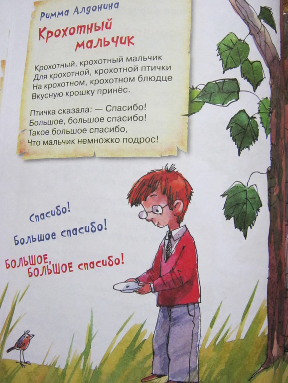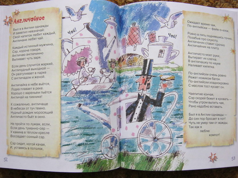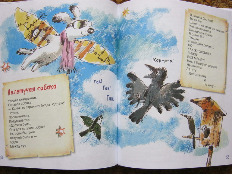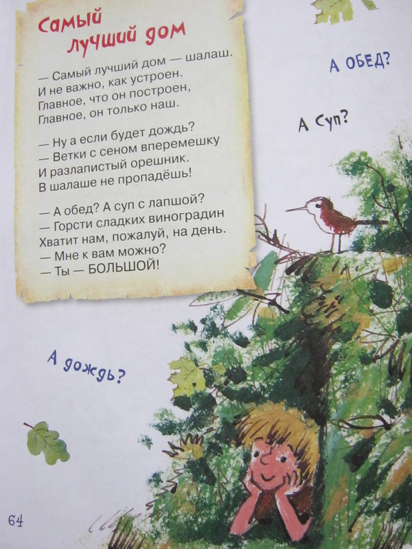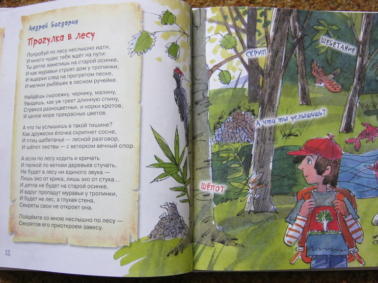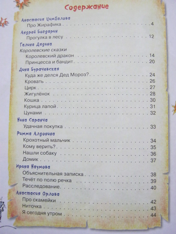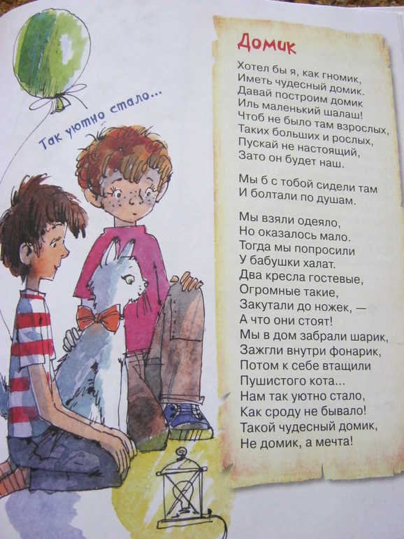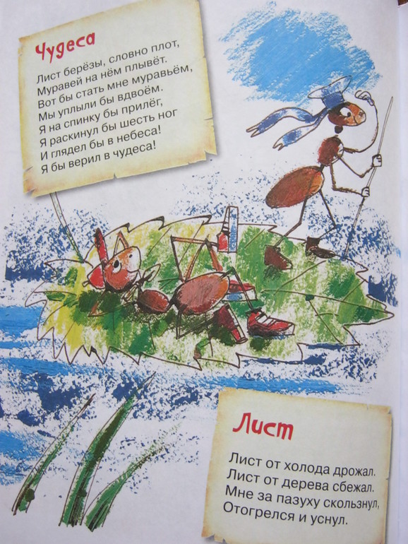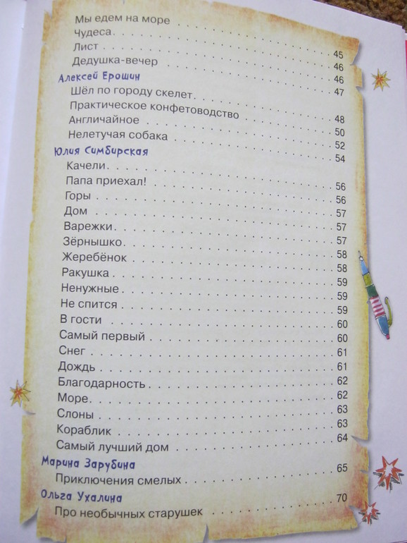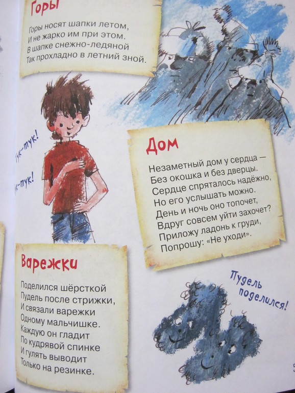 Стихи - и коротенькие, и довольно длинные истории-баллады, есть лиричные, есть шуточные, забавные, есть с меняющимся ритмом, есть простенькие типа раз-два-считалочек, есть стихи для игры, есть для созерцания - ну на любой вкус.