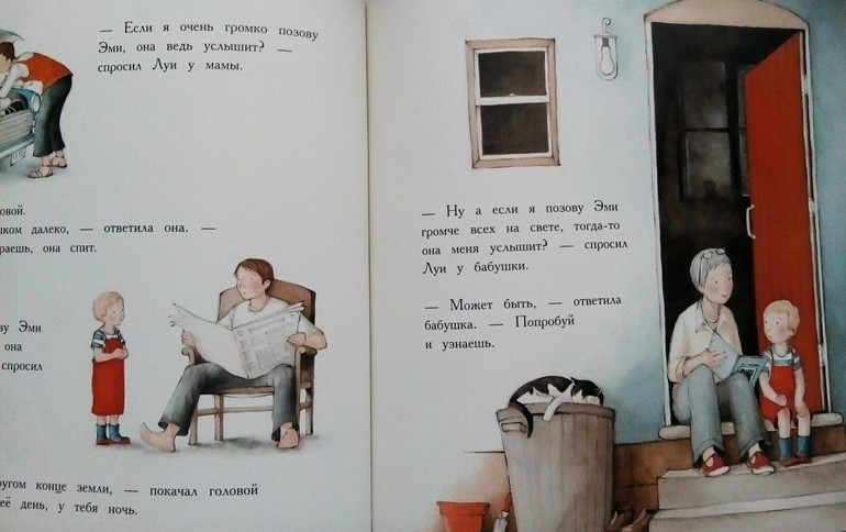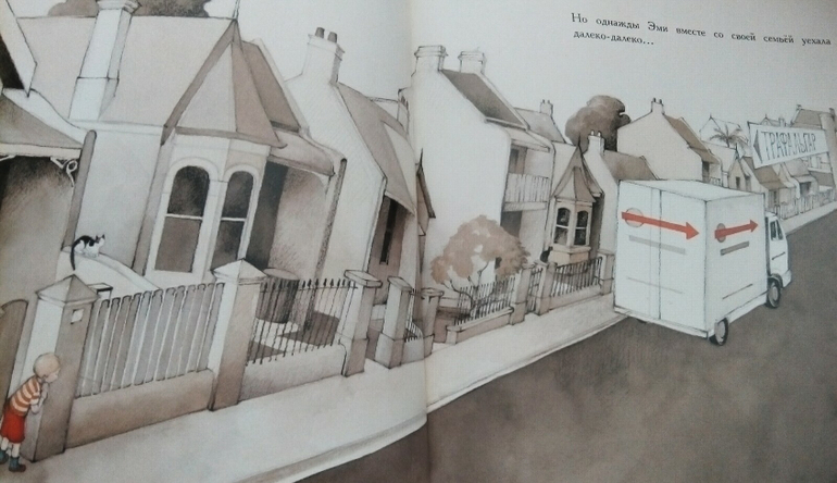 " Мама, верни её! ", - вот и сын столкнулся с таким явлением нашей жизни, как расставание с близкими и дорогими людьми. И как хочется, чтобы его это коснулось только здесь, на страницах книги. Но он уже видит в Эми Полине своего друга, и грусть в его глазах неподдельна. Бровки домиком не дают усомниться в его искренности. (Муж отказался читать эту книгу, чуть не расплакался: "читайте её сами -не могу").