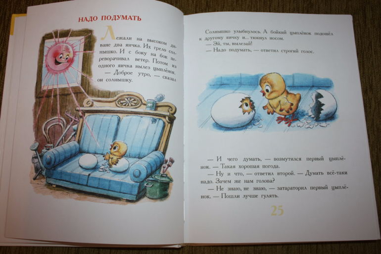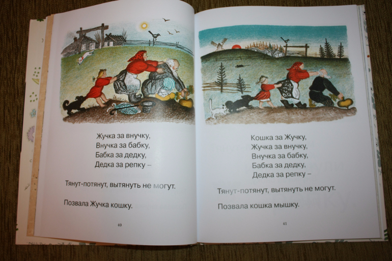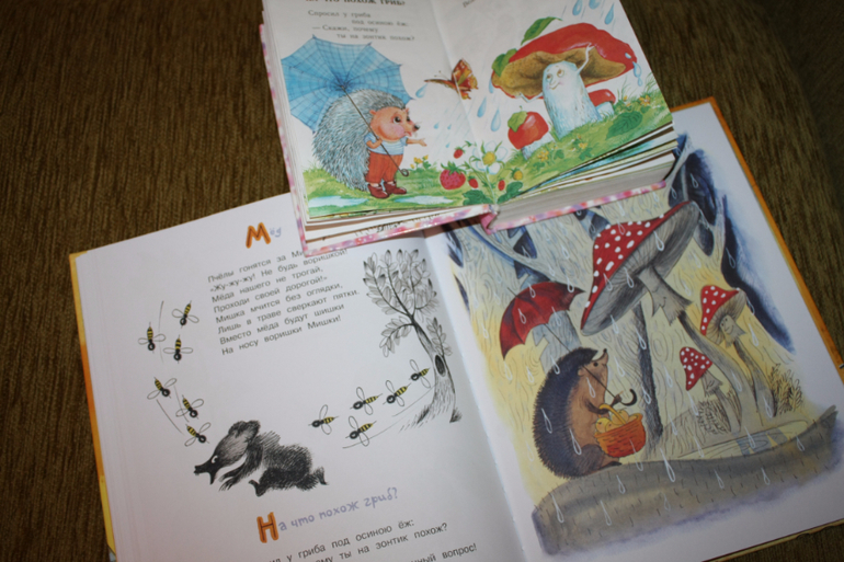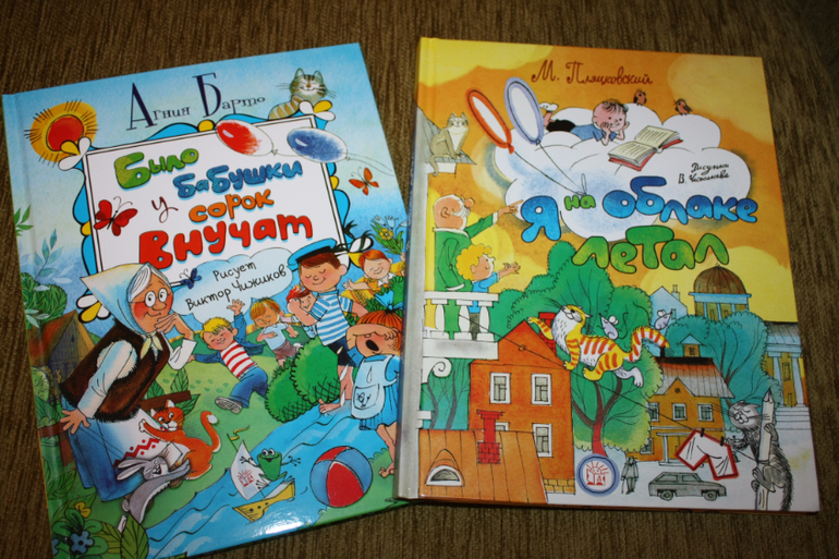 У нас ранее была другая книга со стихотворениями и сказками Пляцковского (осталась от племянника). Сын ее любит уже месяцев 8-9. Там частично тоже Чижиков, качество конечно намного хуже. Но сын по привычке часто приносит именно ее, пришлось сначала показать, в новой те же его любимые стихотворения.