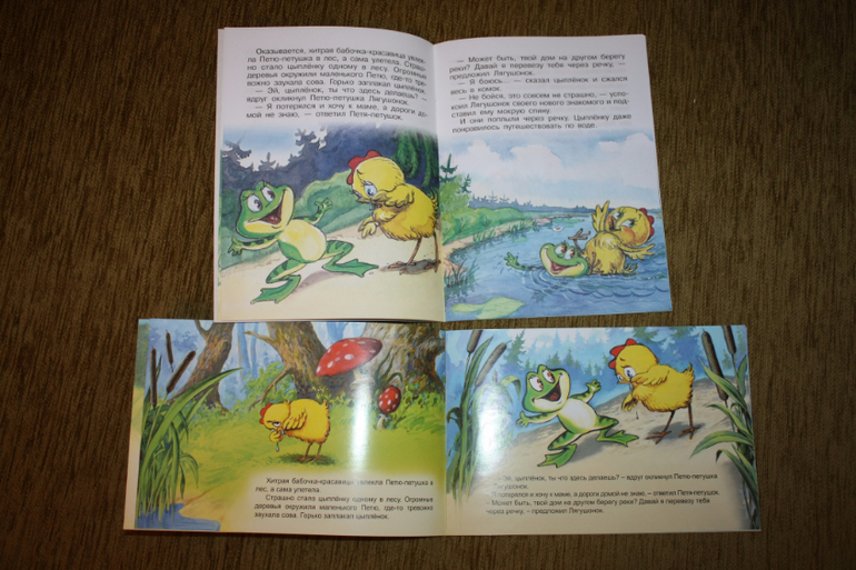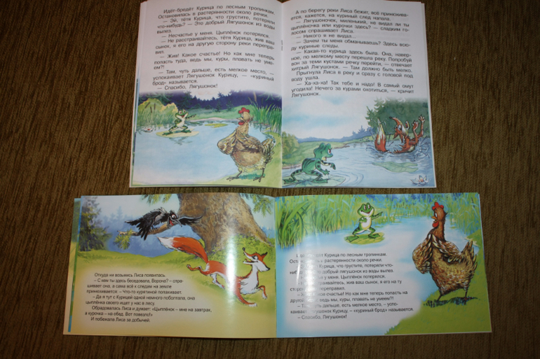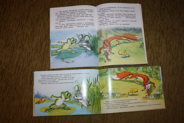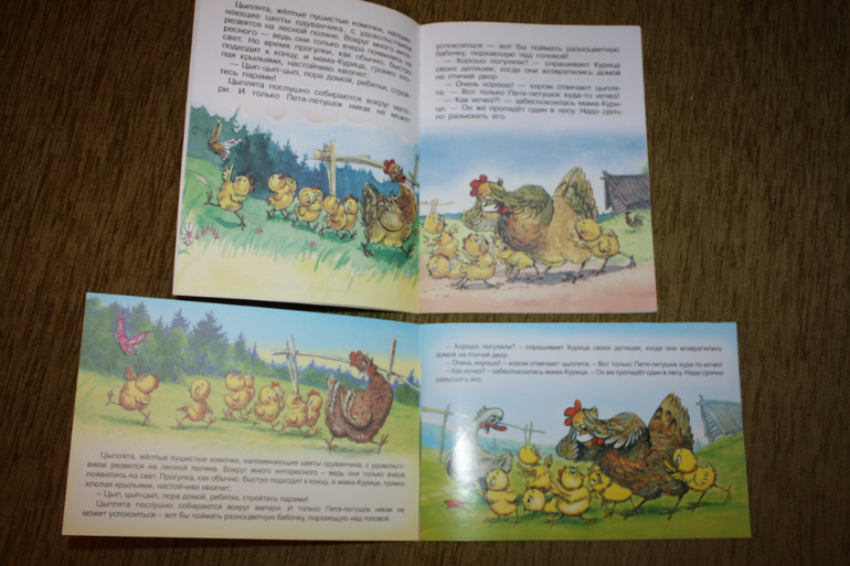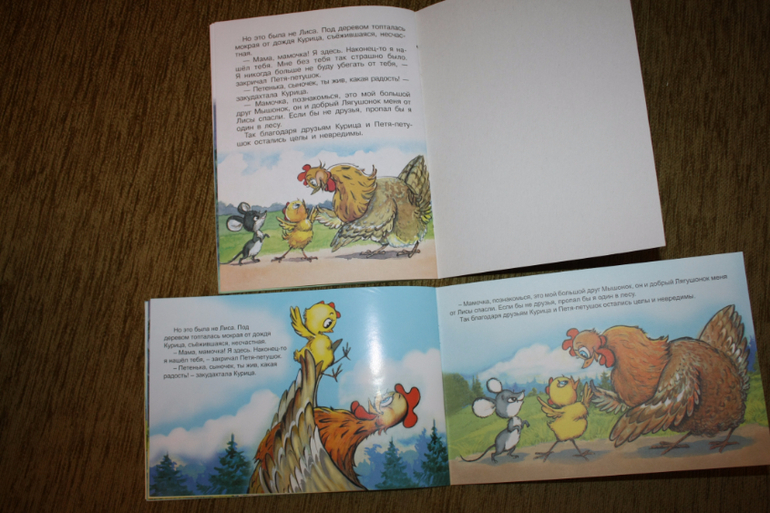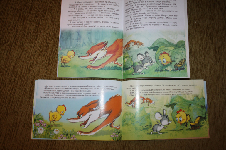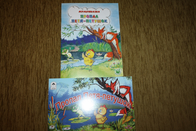 Отдельно хочется сказать про сказку "Пропал Петя-петушок" от издательства "Яблоко" и "Алтей". Текст слово в слово, а вот картинок больше в издании "Алтей" (нижняя книжечка на фото):
