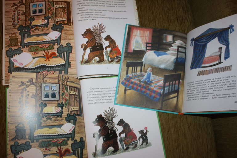 Вот так выглядят три медведя в разных изданиях (Васнецов и Устинов):