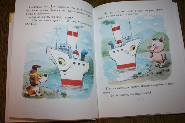 Барто с иллюстрациями Чижикова. Многое из этого сборника читали ранее в других сборниках и тонких книжках с более детализированными изображениями. Но ведь если картинок меньше, а текста больше, развивается воображение? Вобщем слушал сын хорошо и с таким количеством текста на странице. Не знаю, может у него возникли ассоциации с теми иллюстрациями, что мы уже видели к этим стихотворениям, у меня так точно возникли.