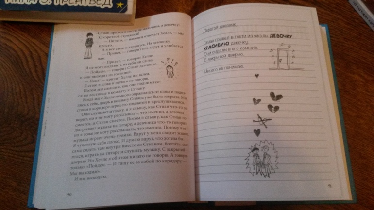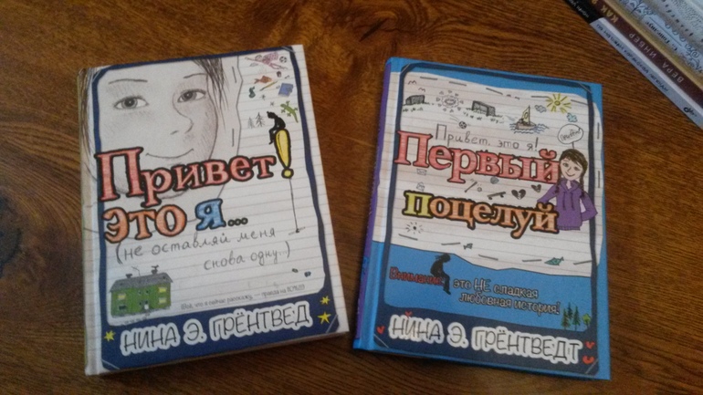 Первый поцелуй в комплект к первой книге купила. У этой даже форзацы разрисованы. Много милых картиночек и разных шрифтов.