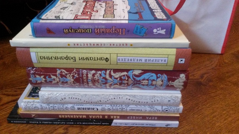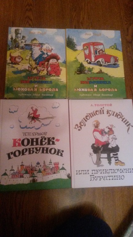 НЕ смогла не купить Муфту, Девочка и птицелет и Конька, Буратино с Кокориным. Последние у меня были букинистические, но я новые оставила, ибо на меловке иллюстрации заиграли по-другому. Старые отдала сестре, та тоже довольна осталась.