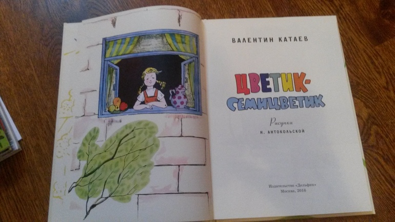 Цветик-семицветик с ил. Антокольской. Не удержалась, люблю художницу! Очень милая книга, иллюстрации на каждой странице, тонковатая меловка и цена несколько завышена.