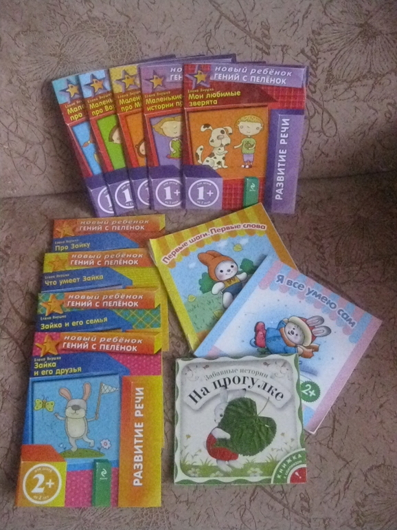 Янушко на +1 тоже брала комплектом, а вот +2 уже отдельно, и не все мне понравилось (бумажные аппликации не самые удачные). Стройка по настроению, рекорд был 14 раз в течение дня. А потом, то пару раз, то не вспомнит. Иногда пытается за мной повторять строчки, что меня конечно очень радует.