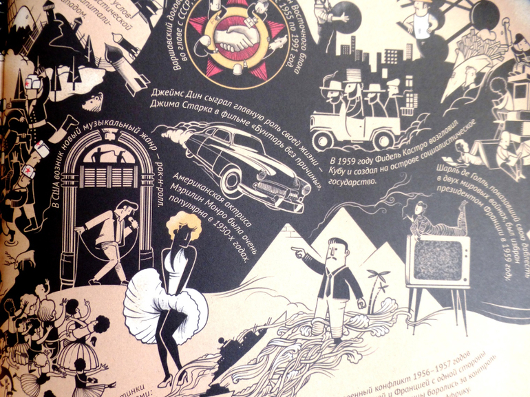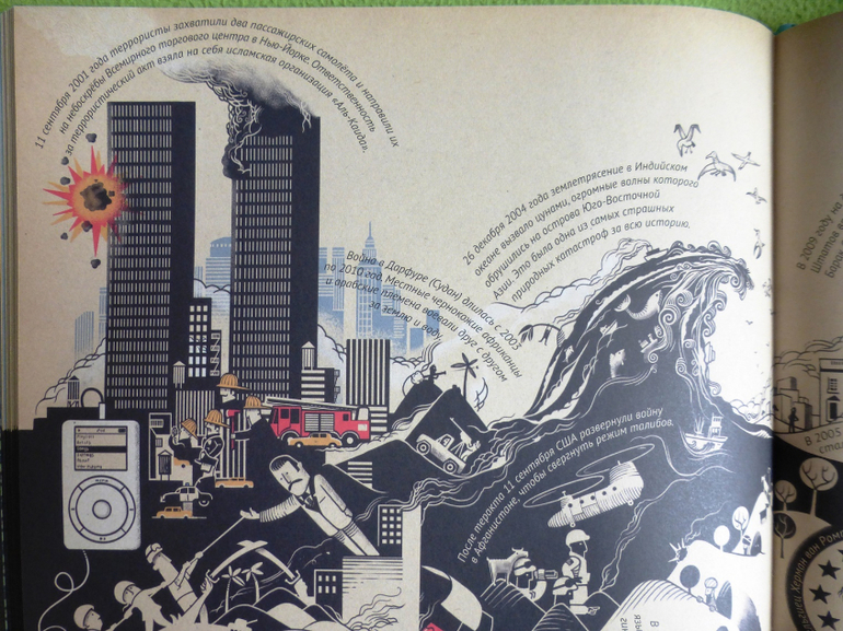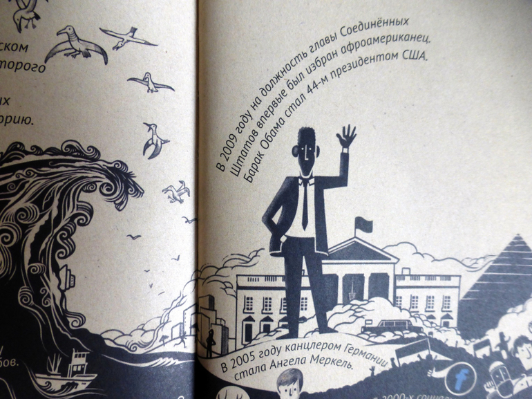 Отличительная особенность в книге, что предыдущий ХХ век иллюстрирован достаточно подробно по десятилетиям.