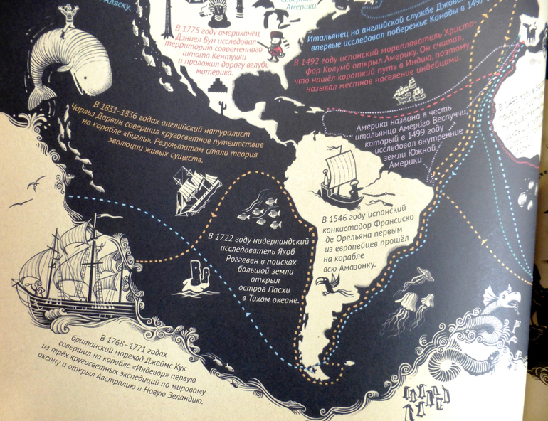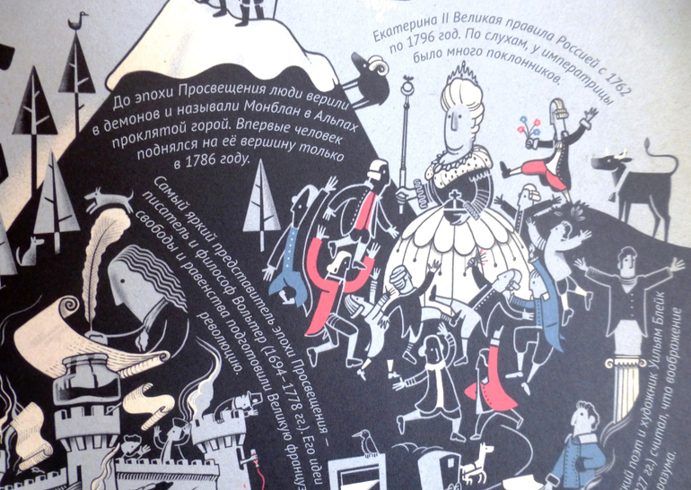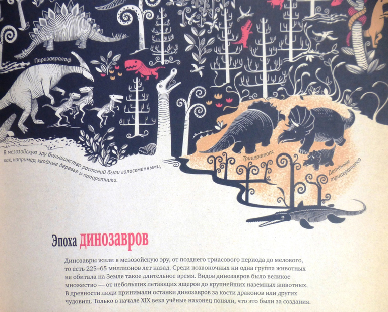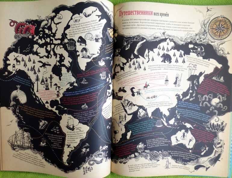 Это своего рода АРТ-энциклопедия, где основная часть информации дана именно в рисунке, каждый разворот можно рассматривать очень долго. Каждая страница в книге наполнена большим количеством персонажей, деталей и событий.