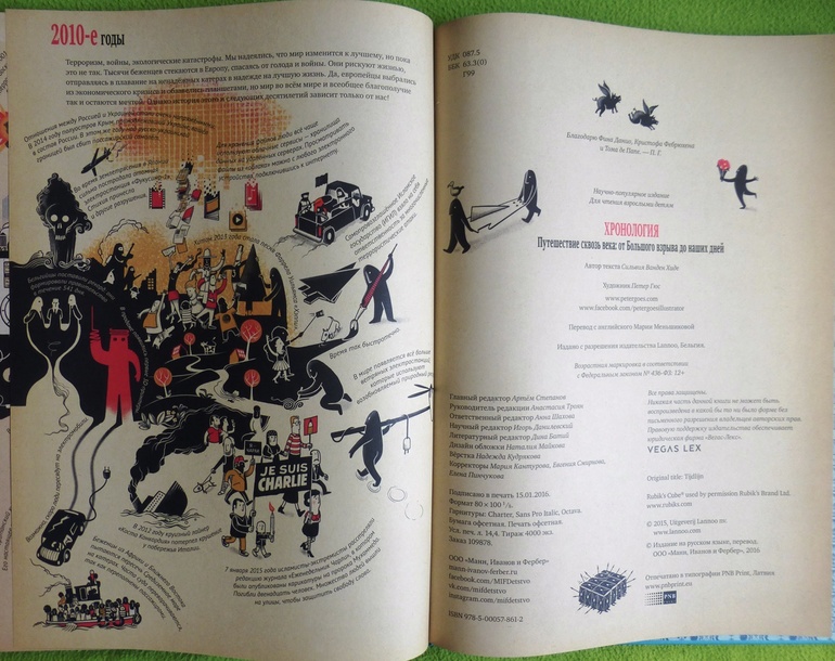 На последнем развороте мы видим в первый раз черных человечков с кисточкой и карандашом в руках, которые рисовали всю ленту времени