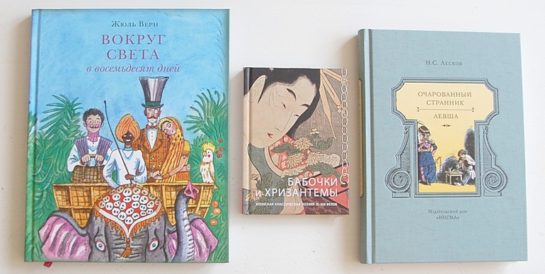 «Вокруг света в восемьдесят дней» - один из моих любимых романов Жюля Верна. Даже если молодежь не будет читать, я сама с удовольствием прочту её ещё не один раз. Две повести Лескова очень хочется освежить в памяти, тем более, что я собираю эту серию классики. «Бабочки и хризантемы» подсмотрены в обзоре Катерины и выпрошены у мужа в качестве подарка просто так, ну или потому, что Японию я тоже люблю.