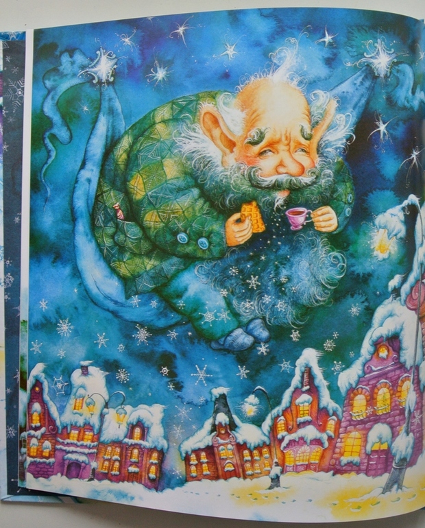 Серебряные подружки Старичка, уплетающего вафли, а крошки из бороды он вытряхивает на зимний город