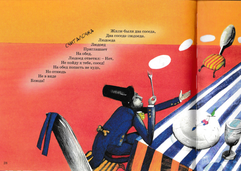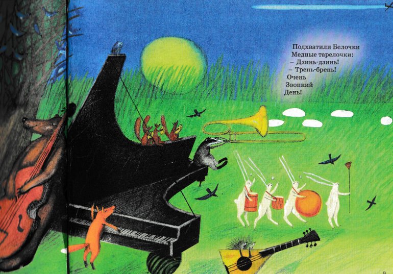 Анна, надеюсь, не обидитесь, что влезаю - на рутрекере есть эта и еще 3 книги (Как лягушки пили чай, Я построил дом с трубою, Ужаленный уж) из серии в обалденном качестве, даже с планшета можно с ребенком читать.
