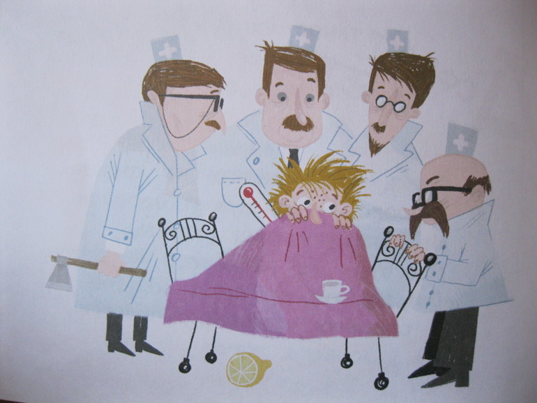 Есть ощущение, что он очень не любит врачей, к примеру. Мне, например, совсем непонятно на этой картинке, зачем художник вручил одному из врачей топорик:
