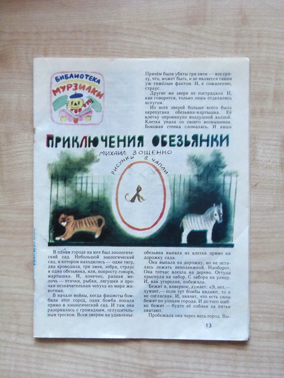 2. Рассказ о приключениях обезьянки М.Зощенко. Напечатан в журнале Мурзилка. Он тоже со времен моего детства, лежал и пылился у мамы, пока она случайно его не обнаружила. Рассказ, несмотря на грустное начало, очень смешной. Всем, кто не читал, советую. Есть, например, в этом сборнике.