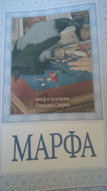 Совершенно случайно дома нашлась книжка про ворону Марфу Геннадия Спирина! Эта книжка оказалась лучшим, что можно было придумать для первой книги. ( фото не очень, но это не помешает сути)