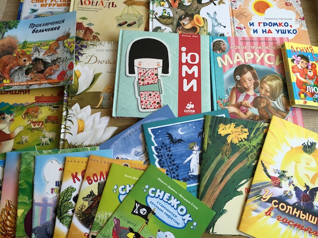 На английском в этот раз взяли книги в библиотеке, я "открыла" замечательную полку с большим выбором детских книжек в отличном состоянии, некоторые, похоже, ни разу и не брал никто. Как ни странно, на английском Настя с удовольствием слушает и в моем, и в папином исполнении.