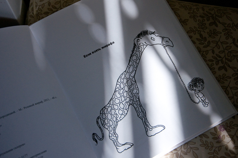 Так весело мне не было давно, приблизительно с того времени, как я познакомилась с коровой Лизелоттой. Но если с рогатым парнокопытным отношения у сына не сложились, то жирафа мы полюбили синхронно и вместе. На всю книгу одно длинное, восхитительно веселое стихотворение в духе английского абсурда.