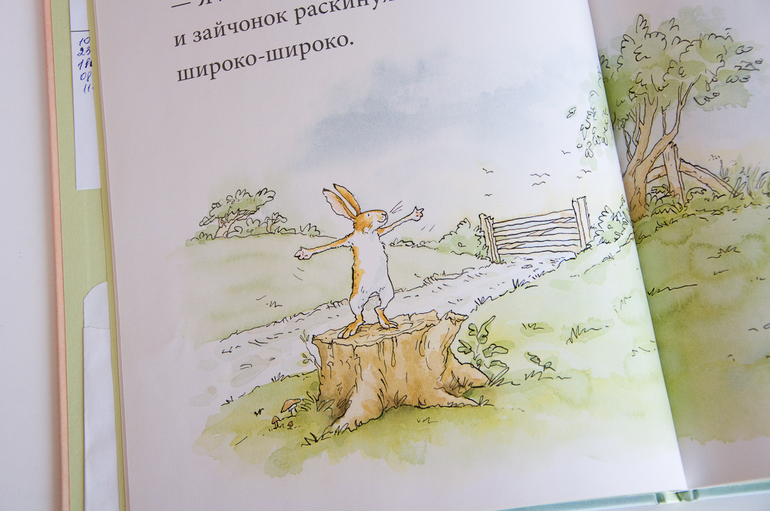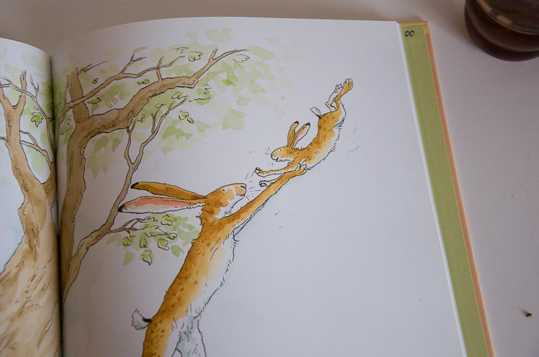Еще одна не менее удачная книга, но которую мы все же немного переросли стала «Знаешь, как я тебя люблю». Я прочитала ее без особого энтузиазма, а от Семка был в восторге, особенно после того, как мы начали делать за рядку по книге.