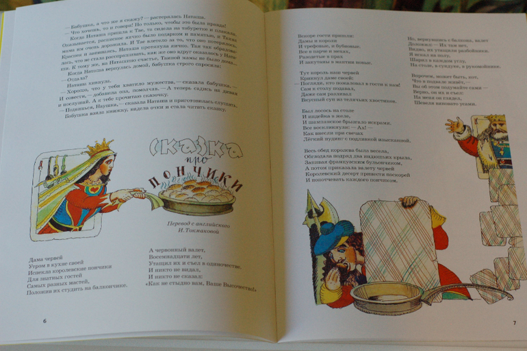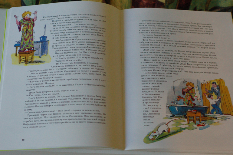 Много крупных иллюстраций, занимающих либо всю, либо большую часть страницы, один разворот без иллюстраций.