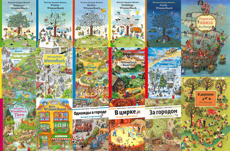 Одной из самых популярных художников, с именем которой зачастую и ассоциируются виммельбухи это - Rotraut Susanne Berner и цикл её сезонных книг. Летняя книга, осеняя, зимняя, весенняя и даже ночная.
