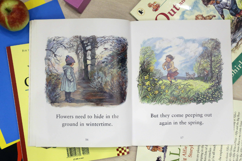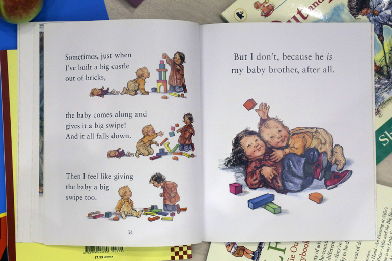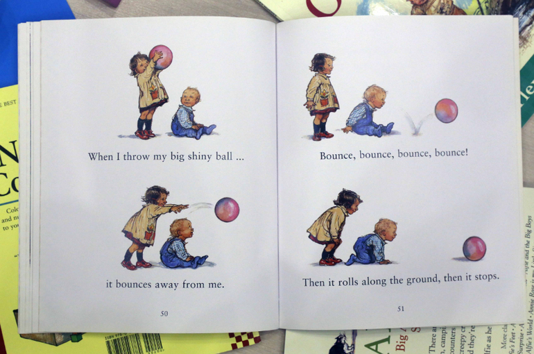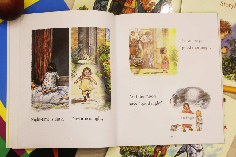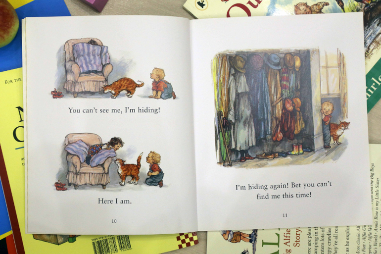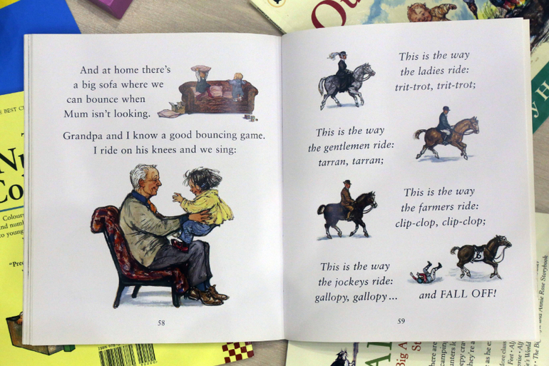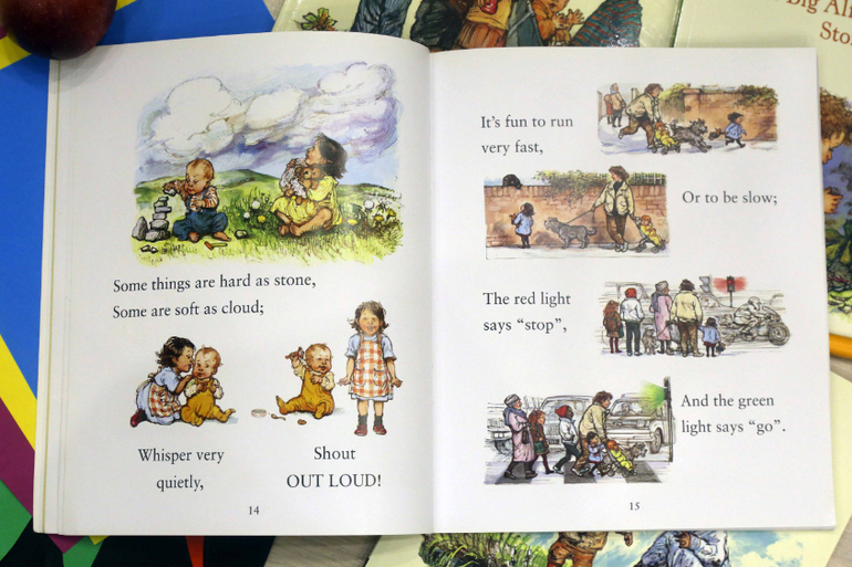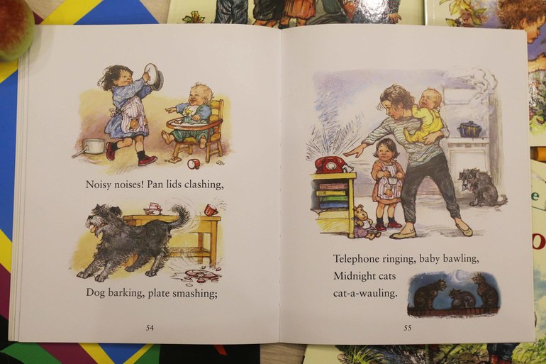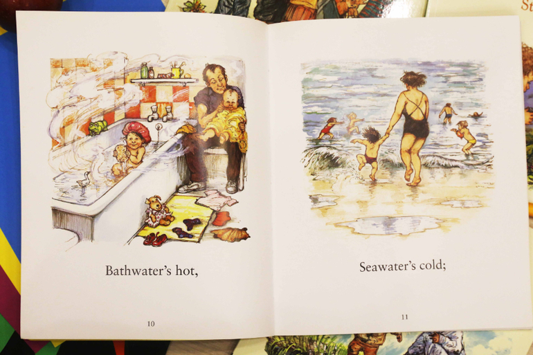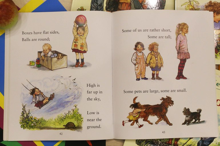 Первая наша книга Ширли Хьюз - The nursery collection. Удивительная, замечательная книга для самых маленьких. Ненавязчиво изучаем противоположности - горячо и холодно, высоко и низко, быстро и медленно.