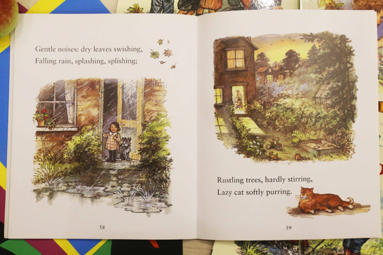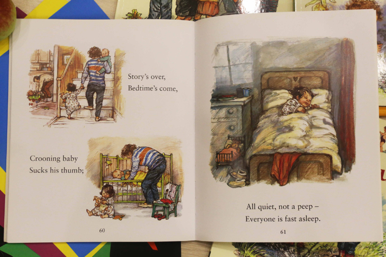Последнее стихотворение - это колыбельная. Кстати заметила, что каждая книга Ширли Хьюз ( те, что у нас есть) заканчивается на том, что пора спать. Очень удобно, учитывая, что книги мы читаем перед дневным и ночным сном.