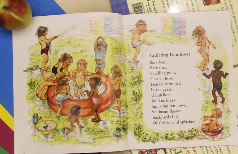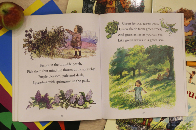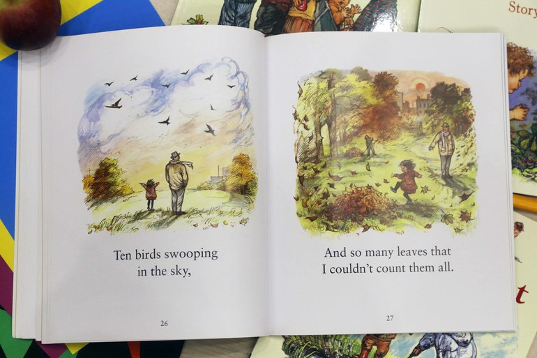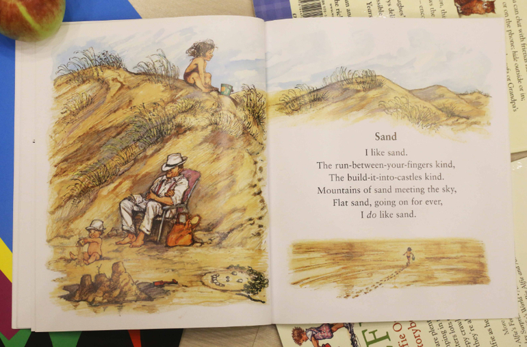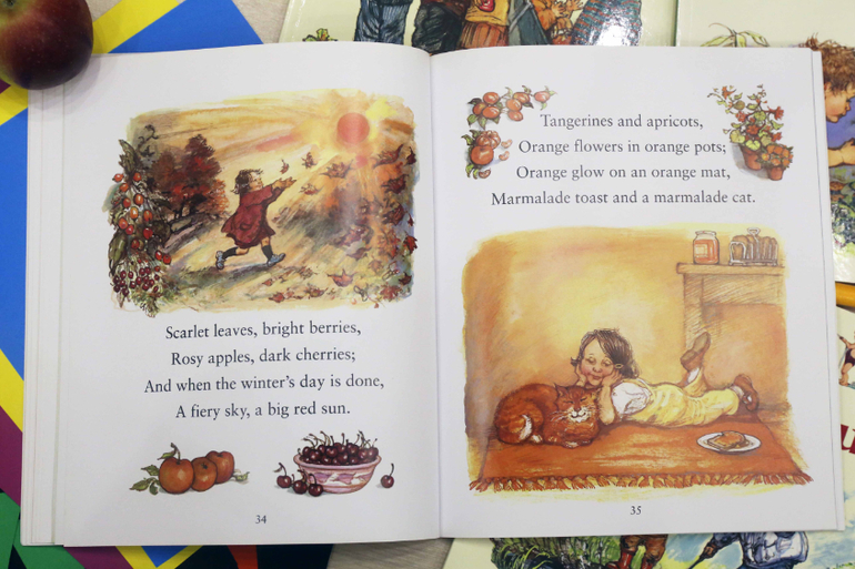 Книга Out and About - это книга стихотворений, посвященных природе и временам года. И все это, конечно, через призму детства. Поначалу эту книгу я читала для себя, хоть и вслух. Ване было не интересно и я смирилась, что это книга для мамы. Но через некоторое время сын проникся и стал сам просить меня почитать её.