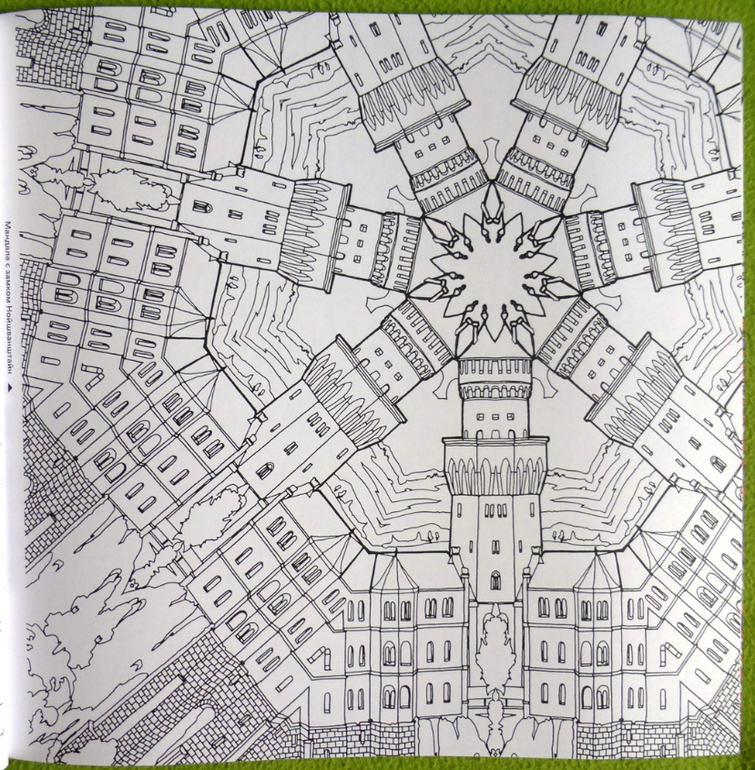 Помимо потрясающих и детализированных изображений городских улиц и самых красивых зданий в книге есть и медитативные мандалы.