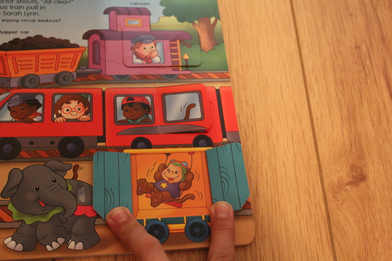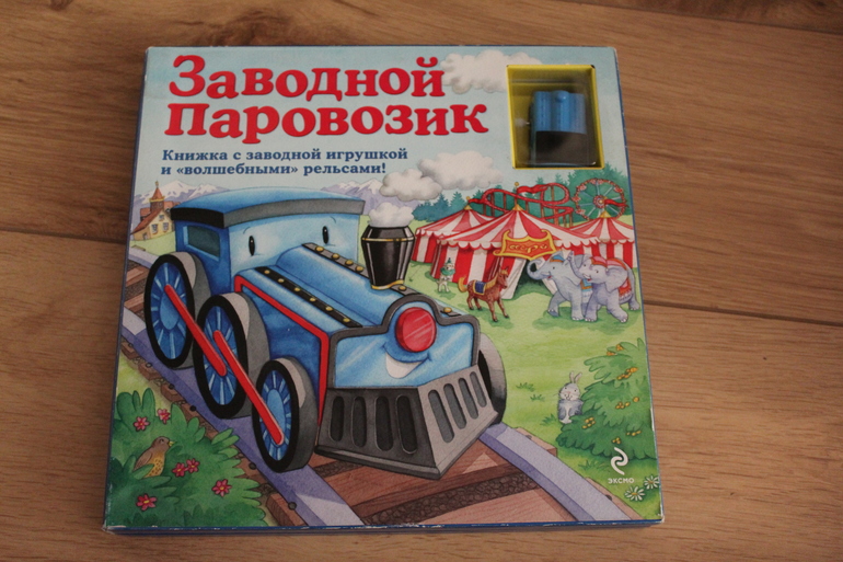 Сейчас в любимчиках из книжек-игрушек схваченный на распродаже "Заводной паровозик". Она, видимо, завалялась в глубинах магазина из-за ранее высокой цены, пообтрепалась и досталась нам за совсем небольшие деньги.