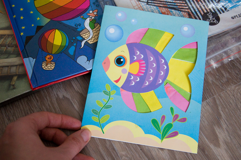 Ярким в нашей посылочке оказалась вот такая открытка с рыбкой и самыми теплыми словами и пожеланиями. Спасибо!