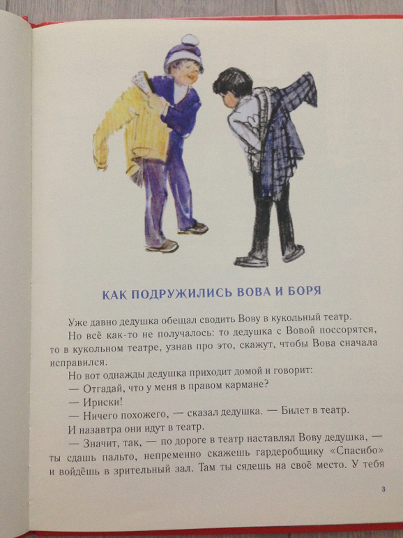 "Вовка, кастрюлька и дедушка" Яков Длуголенский. Купила книгу с воспитательными целями - почитать-поговорить-обсудить, как вести себя в обществе) почитала сама "по диагонали", вроде истории без навязчивого морализаторства. Прочли треть книги, сын слушал с удовольствием, мы повторяли правила поведения в обществе, ему стало скучно - убежал играть))) так и "бегает" от этой книги. Убрала на вырост. Хотя истории написаны легко, и ненавязчиво говорится о правилах поведения.