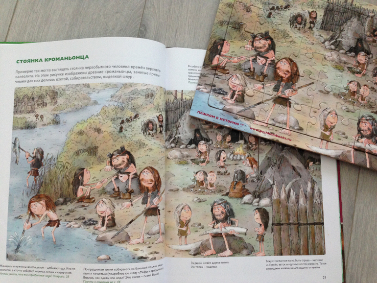 "Мы живем в каменном веке" энциклопедию для детей от изд-ва "Пешком в историю" читали очень много раз в марте. Покупала ее с хорошей скидкой на вырост, но сын увидел и захотел прочитать. БОльшую часть глав мы читаем весь текст, какие-то я ему рассказываю "своим" языком. Сыну очень понравилась, даже был куплен пазл от этого изд-ва про каменный век, но качество пазла "хромает".