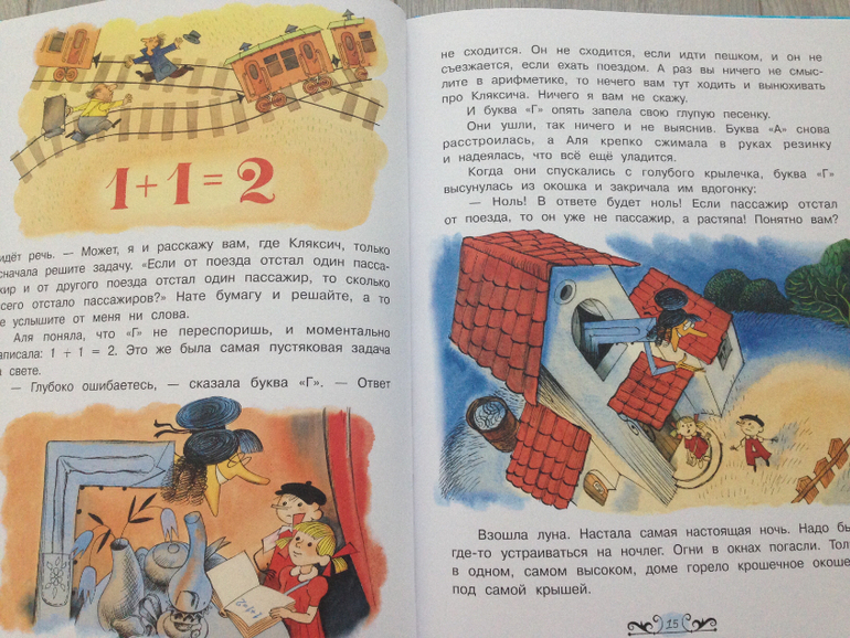 "Аля,Кляксич и буква "А" Ирина Токмакова. Наша новая книга, многократно читаемая в апреле. На мое предложение выбрать книгу для чтения Буратино или Алю с Кляксичем, сын выбрал Алю. Арсю понравилась книга, понравилась буква А и не понравился Кляксич) в сообществе в дневниках чтения частенько встречала негативные отзывы от родителей об этой книге, что книга "ниочем", без особого сюжета. А мне, как и сыну, очень понравилась) автор так характерно изобразил буквы, да и одна только задачка-шутка буквы Г про опоздавших пассажиров чего стоит))) лично я рекомендую Алю, и иллюстрации Чижикова здесь хороши. И их много!