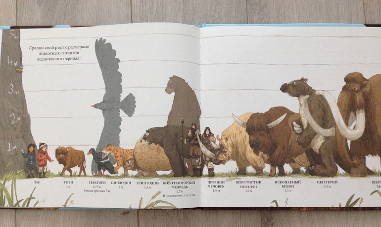 "Тоби и гиганты Ледникового периода" Джо Лиллингтон. Купила ее на скидках и мне не стоило ее покупать. Книга-картинка без истории о некоторых вымерших животных последнего ледникового периода. Арсений ее перерос, тем более, что у нас есть от ИДМ Палеонтология, где об этих же животных рассказано, а младший сын не дорос. Прочитали пару раз, на этом все.