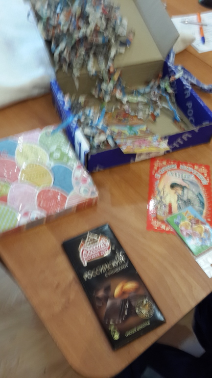 фото с телефона. Спасибо за яркие салфеточки и вкусный шоколад! Надеюсь наша посылочка не разочаровала, мы старались.