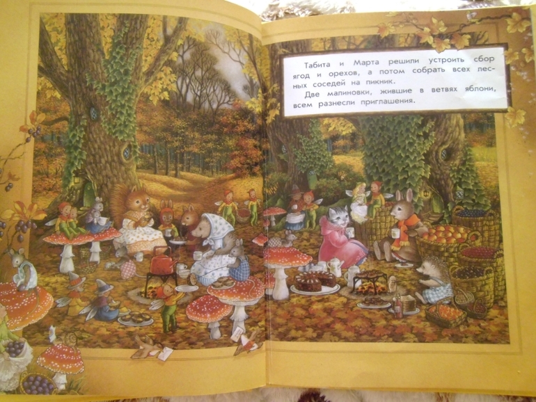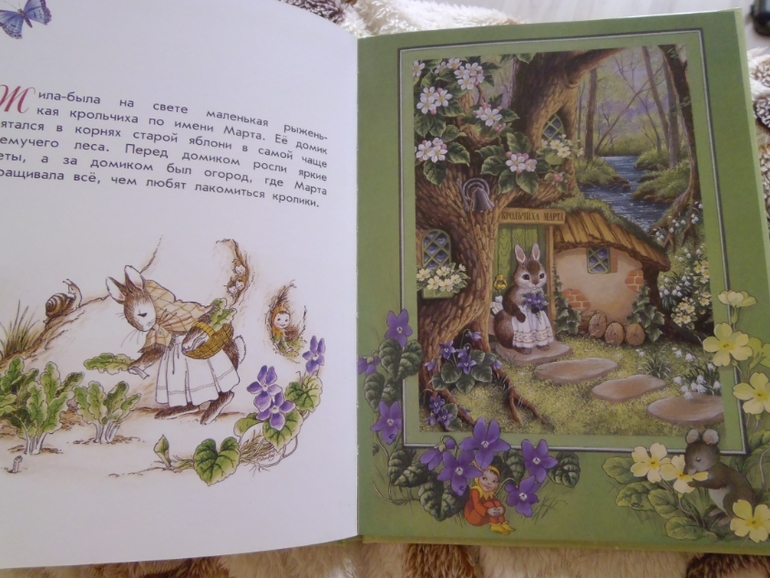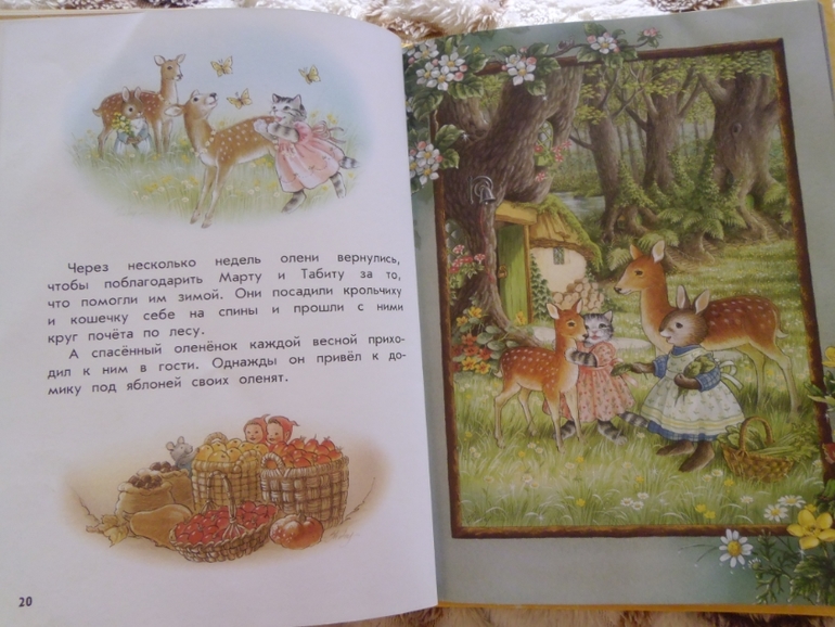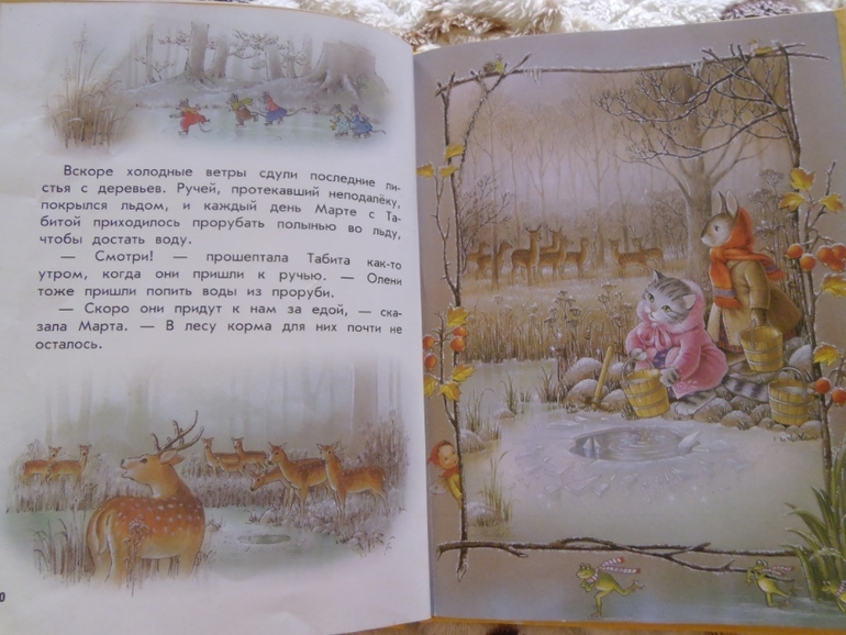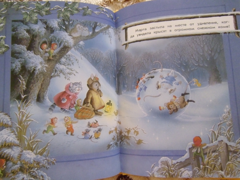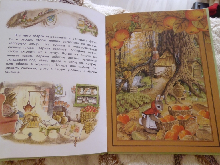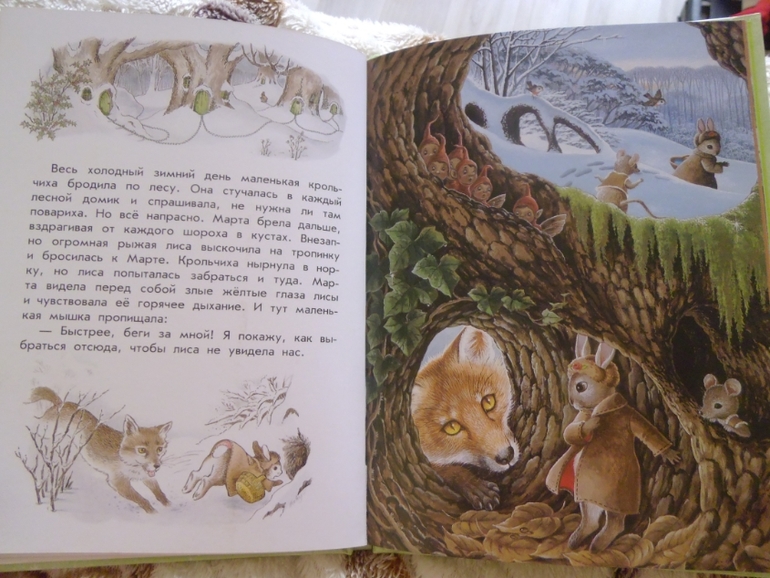 С недельку почитав про Марту,я заказала еще одну книгу из серии.Это предыстория.Всего один рассказ.Но тоже прекрасный.В этой книге толстенная меловка,иллюстрации попроще,но тоже яркие и красивые.Дочь читать отказывается,она у меня не любитель острых моментов,а здесь одни проблемы-у Марты украли еду,а потом ее чуть не сьела лиса.Кошмар-кошмар,не будем это читать:)