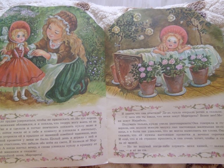 Сначала рассказывала историю по картинкам(они чудесные),сейчас в 3 года читаем текст полностью.Кукольные семена будоражат наше воображение.Говорю мужу:"Эх, хорошо бы вырастить дом,или машину,или хотя бы колбасу".Он ответил,что начнуться войны за колбасные посевы,а потом от безделья люди деградируют обратно в обезьян.Ох уж эти мужики,разбил все мечты вдребезги!