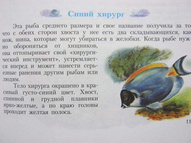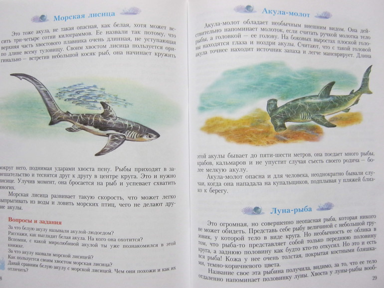 В тонкой книжечке столько полезной информации! Главки есть небольшие - на полстраницы, есть и побольше - на страницу-полторы. Иллюстрации мелковаты, но вполне конкретны, для знакомства, а уж тем более, узнавания, вполне достаточны. Мне нравятся названия глав - Синий хирург, Акула-нянька, Гладкая свистулька, Четырехрогий кузовок.