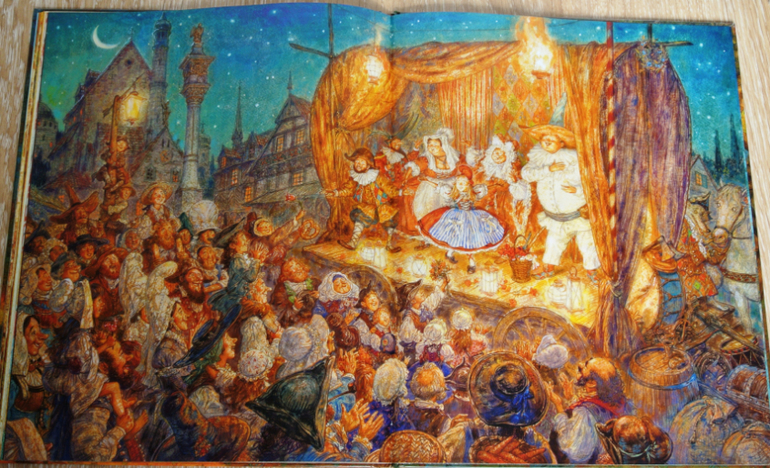 Эта книга у нас появилась несколько лет назад. Она очень хорошо подходит для дошкольников и мл.шк.возраст. Удачное приобретение в удачное время. Мальчишкам, помню, сразу понравилось оформление. На днях, когда вытащила Шапку с полки, чтобы сфотографировать с "Невеличкой" Речи, средний опять сел рассматривать со словами: "Хочешь фокус покажу?". Конечно, хочу! Хоть и знаю, что опять мне покажет рисунок, где бабушка с книгой "Кот в сапогах" лежит (тоже иллюстрированной Ломаевым). Очень уж сыну нравится этот разворот:)))