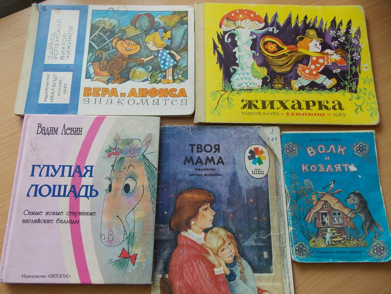 И еще,, вчера мы записались в библиотеку, старшие дети, да и я сама давно туда ходим, но вот с маленькой еще не были, взяли книжечек на пробу. Выбирала я сама, тк дочь все порывалась с глазами пластиковыми схватить, пришлось отговаривать, но вот в волка и козлят вцепилась и не отдавала, и ни какие уговоры, что у нас дома точно такая есть не подействовали...а по остальным у меня прям ностальгия, точно такие и у меня когда то были)) странно, но со старшими детьми я эти книжки не видела там... но дочку они не впечатлили, к моему глубокому огорчению, кроме Веры и Анфисы, с этой книжкой Милена даже спать легла, положила под подушку. Сказала, остальные унеси, а про обезьянку не дам))