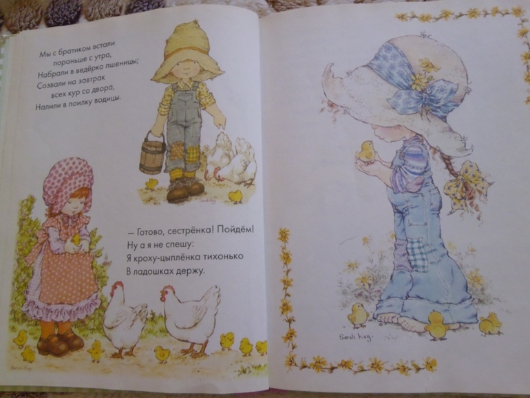 Рисунок, где ребята у колодца с очень-очень детскими лицами и не очень детским всем остальным какой-то несуразный А остальные милые. У нас есть книга, иллюстрированная Сарой Кей, тоже купила из-за иллюстраций), хотя их там и немного. "День рождения в Лейктауне", дочке нравится.