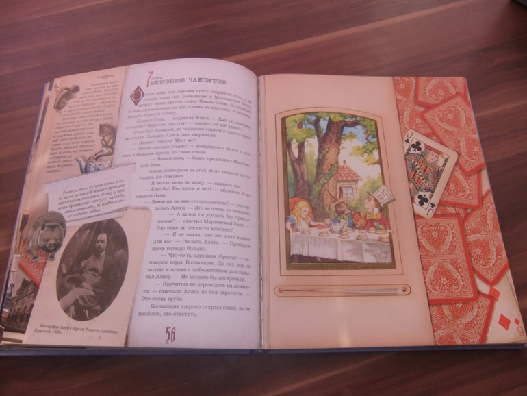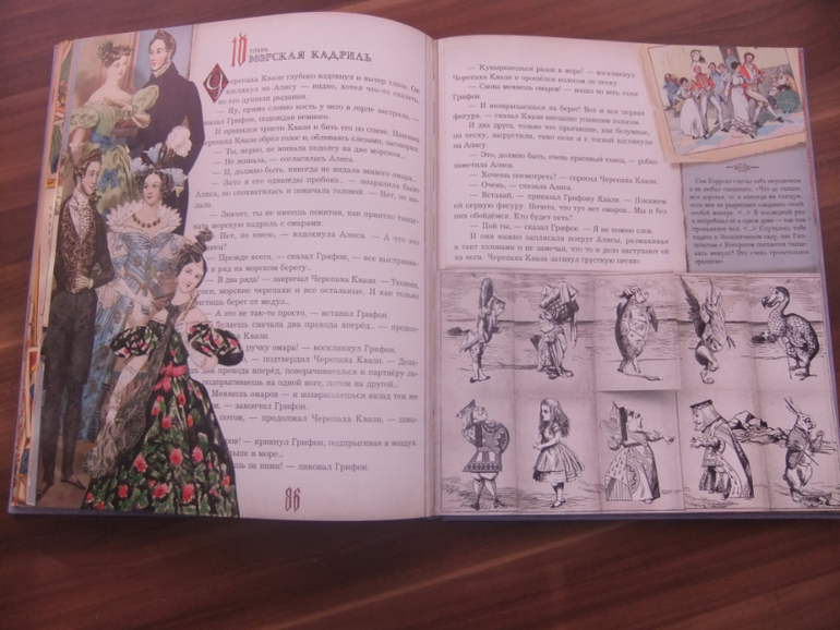 Ты знаешь, была у меня в детстве "Алиса". Именно с такими иллюстрациями. Но такое "скромненькое издание", бумага серо-желтая, формат маленький, обложка тонкая. Не сохранилась, к сожалению. Я давно хотела "Алису" купить, но все как-то более нужные вещи находились. А в сторону этой книги я даже и не смотрела. И совершенно напрасно. Она замечательная, волшебная, и немного родная, из детства.